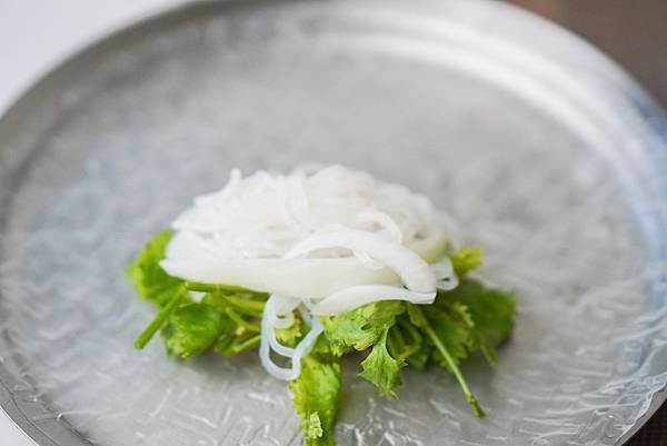 1.蝦仁去腸泥燙熟切半、洋蔥切絲、香菜切洋蔥長度的長段、蒟蒻麵熱水燙過瀝乾備用。