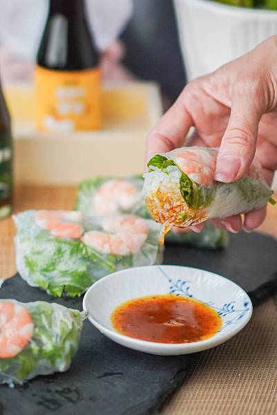 花花覺得海鮮和蔬菜與香菜醬油是絕配,所以有蝦仁跟蔬菜的越南春捲和香菜醬油是我覺得最適合的組合,加上無負擔的蒟蒻麵就是低卡健康的好料理!